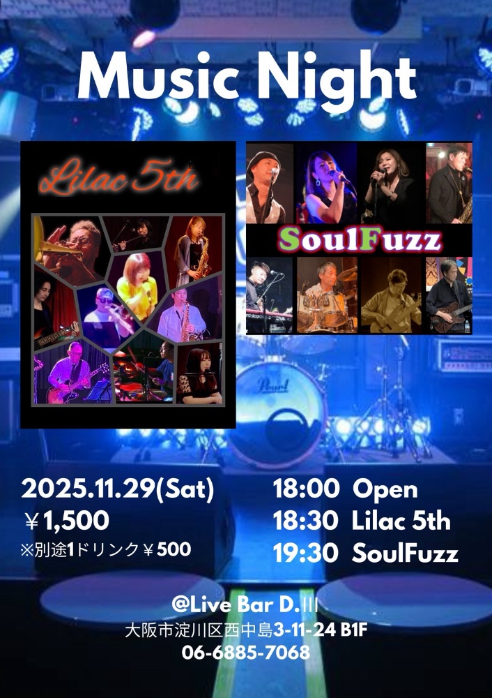 日時:2025/11/29時間:18:30〜19:15チャージ:1,500円+ワンドリンク500円場所:ADDRESS:大阪市淀川区西中島3-11-24 B1FACCESS:大阪メトロ御堂筋線『西中島南方』駅 , 阪急京都線『南方』駅URL:https://www.facebook.com/LiveBarD.3/PHONE:06-6885-7068